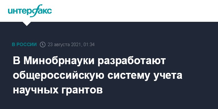 Москва. 23 августа. INTERFAX.RU - Министерство науки и высшего образования РФ (Минобрнауки) намерено разработать общероссийскую систему учета научных грантов, чтобы понять, каковы источники финансирования и эффективность исследований, сообщил глава ведомства Валерий Фальков в интервью, опубликованном в понедельник в газете "Известия".