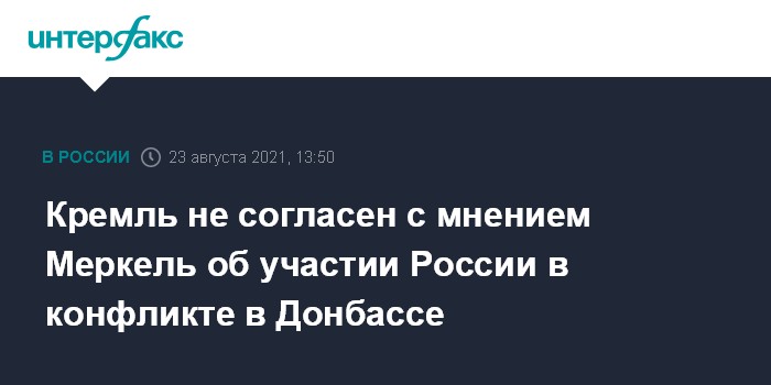 Москва. 23 августа. INTERFAX.RU - В Кремле не согласны с мнением канцлера Германии Ангелы Меркель о том, что Россия является участницей конфликта в Донбассе, Россия не имеет к сторонам конфликта никакого отношения, заявил на брифинге пресс-секретарь президента России Дмитрий Песков.