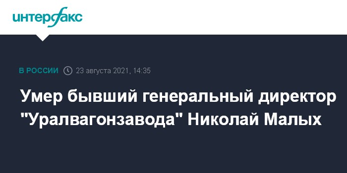Москва. 23 августа. INTERFAX.RU - В Свердловской области умер бывший гендиректор "Уралвагонзавода" Николай Малых, сообщили "Коммерсанту" в пресс-службе УВЗ.