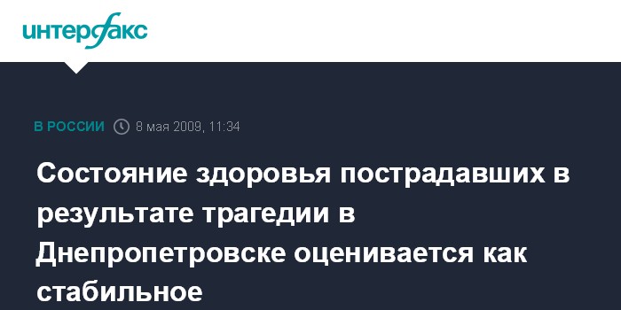 Состояние здоровья пострадавших в результате трагедии в Днепропетровске оценивается как стабильное