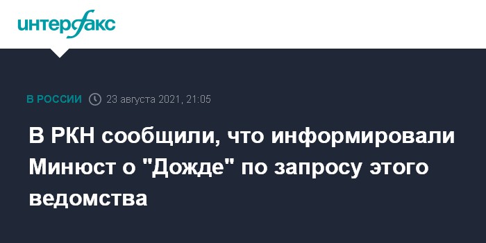 Москва. 23 августа. INTERFAX.RU - Роскомнадзор в ответ на запрос Минюста проинформировал его о том, что телеканал "Дождь", признанный позднее СМИ-иноагентом, регулярно демонстрировал материалы иностранных СМИ-иноагентов, а также получал финансирование из-за рубежа.