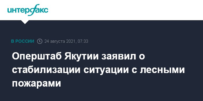 Москва. 24 августа. INTERFAX.RU - Ситуация с лесными пожарами в Якутии стабилизируется, начинается поэтапный вывод привлеченных на тушение сил, сообщает оперштаб республики.