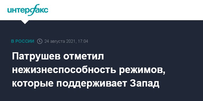 Москва. 24 августа. INTERFAX.RU - События в Афганистане показали, что режимы, которые поддерживает Запад, нежизнеспособны, заявил секретарь Совета безопасности России Николай Патрушев. Он сказал это на встрече с высокими представителями государств БРИКС, курирующих вопросы безопасности, встреча проходила в режиме видеоконференции.