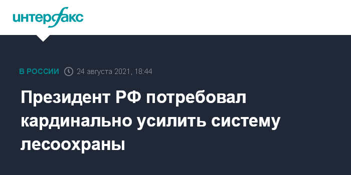 Москва. 24 августа. INTERFAX.RU - Президент РФ Владимир Путин, выступая на съезде "Единой России", поручил правительству кардинально усилить систему лесоохраны в связи с масштабными пожарами в этом году и пообещал двукратное увеличение финансирования этой сферы.
