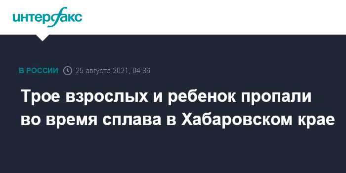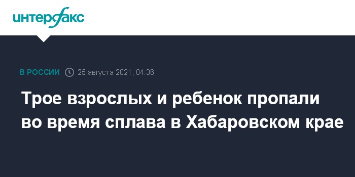 Москва. 25 августа. INTERFAX.RU - Во время сплава на байдарках по реке Горин Солнечного района Хабаровского края пропали трое взрослых и ребенок, сообщает прокуратура Хабаровского края в среду.