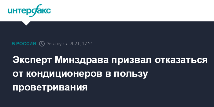 Москва. 25 августа. INTERFAX.RU - Чтобы снизить риск распространения COVID-19 в местах массового скопления людей разумно свести к минимуму использование кондиционеров комнатного типа (сплит-систем) в пользу естественной вентиляции, заявил главный внештатный специалист по инфекционным болезням Минздрава Владимир Чуланов.
