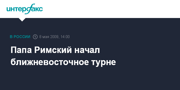 Лондон. 8 мая. INTERFAX.RU - Папа Римский Бенедикт XVI вылетел в Иорданию, откуда он начнет свою первую поездку по Ближнему Востоку, сообщает британская телерадиокорпорация BBC.