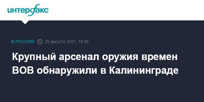 Москва. 25 августа. INTERFAX.RU - Полиция в Калининграде выявила крупный арсенал оружия и боеприпасов времен Великой Отечественной войны, сообщила журналистам руководитель пресс-службы регионального УМВД Светлана Поставничая.