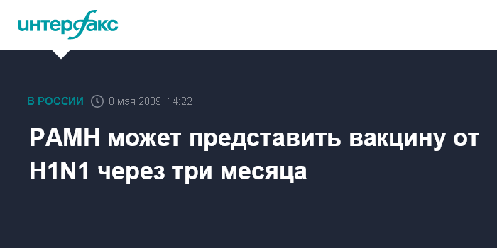 Санкт-Петербург. 8 мая. INTERFAX.RU - Институт гриппа РАМН подготовит вакцину от вируса H1N1 в течение трех месяцев, сообщил "Интерфаксу" директор института Олег Киселев.