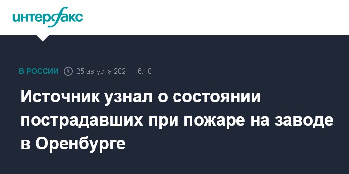 Источник узнал о состоянии пострадавших при пожаре на заводе в Оренбурге