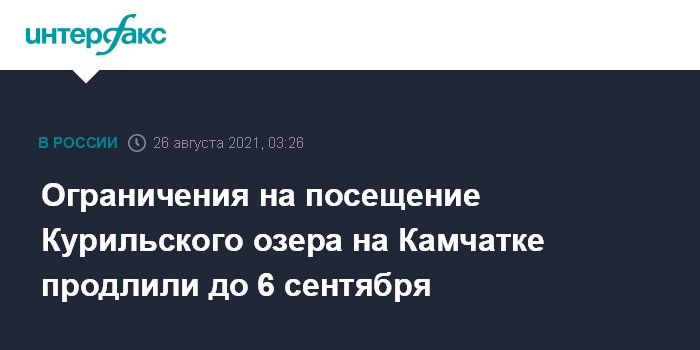 Москва. 26 августа. INTERFAX.RU - Ограничения по Курильскому озеру на кордоне "Озерный" на юге Камчатки, где произошла авиакатастрофа, продлены до 6 сентября, сообщили "Интерфаксу" в Кроноцком заповеднике в четверг.