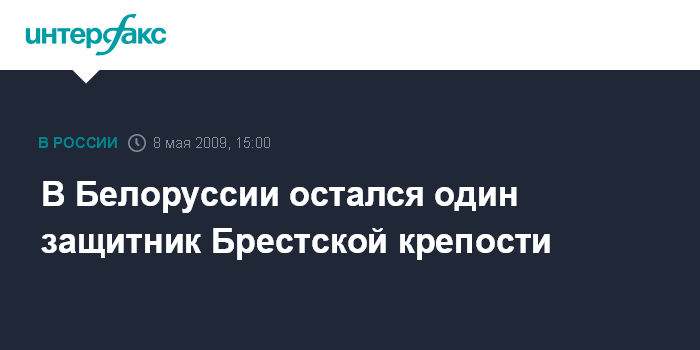 Минск. 8 мая. INTERFAX.RU - В День Победы в Брестскую крепость придет только один ее защитник - брестчанин Петр Котельников.