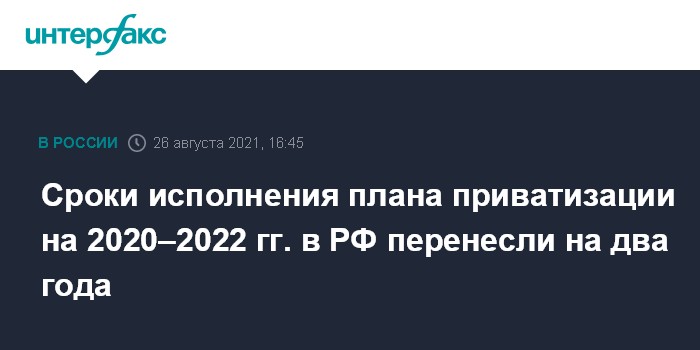 "Цель данной инициативы – синхронизация сроков плана приватизации и сроков бюджетного процесса", - пояснили "Интерфаксу" в пресс-службе Минфина, курирующего приватизацию. Сейчас ведомство готовит проект федерального бюджета на 2022 г. и плановый период 2023-2024 гг.