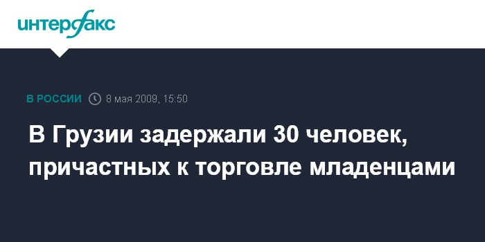 Тбилиси. 8 мая. INTERFAX.RU - Сотрудники МВД Грузии задержали 27 участников организованной преступной группы, которая занималась продажей новорожденных из родильных домов в Имерети (западная Грузия - ИФ).