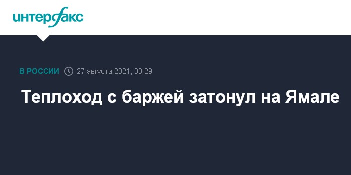Москва. 27 августа. INTERFAX.RU - Теплоход с баржей, груженной строительными материалами, ушел под воду в Обской губе Ямало-Ненецкого автономного округа, сообщает пресс-служба Уральской транспортной прокуратуры.