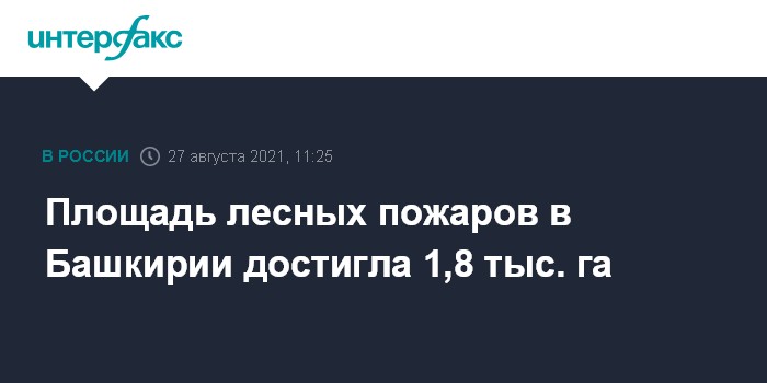 Москва. 27 августа. INTERFAX.RU - Площадь лесов, охваченных огнем на территории Башкирии, увеличилась до более чем 1,8 тыс. га, сообщила пресс-служба ГУ МЧС по республике в пятницу.