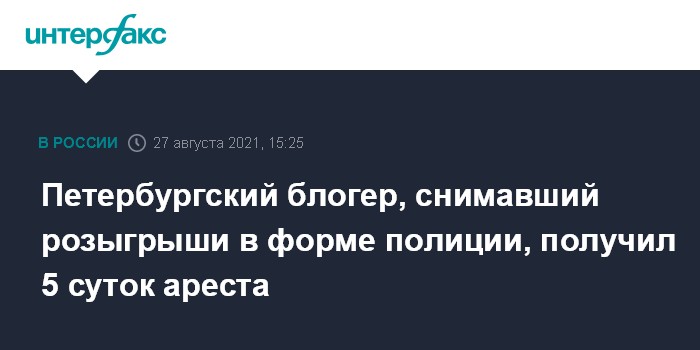 Петербургский блогер, снимавший розыгрыши в форме полиции, получил 5 суток ареста