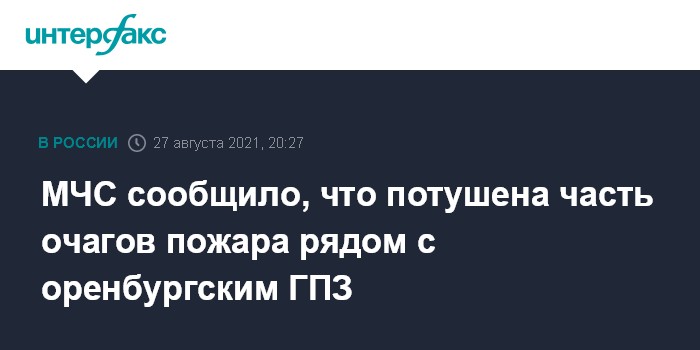 Москва. 27 августа. INTERFAX.RU - Сотрудники МЧС потушили три очага природного пожара в степи у 26 км трассы Оренбург-Самара, сообщила пресс-служба управления МЧС по Оренбургской области. Ранее в МЧС сообщали, что там шесть очагов пожара. Неподалеку находится завод "Газпром переработки".