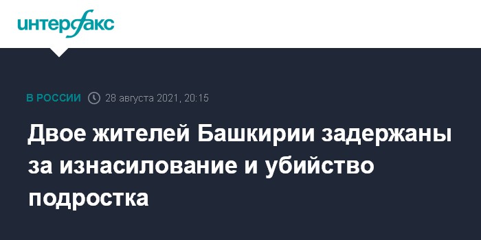 Москва. 28 августа. INTERFAX.RU - Двое мужчин задержаны по подозрению в изнасиловании и убийстве 15-летней девушки в Бирском районе Башкортостана, сообщила пресс-служба следственного управления Следственного комитета России по республике.