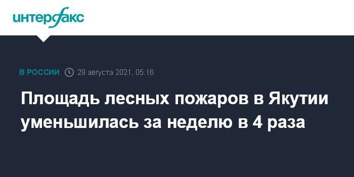 Москва. 29 августа. INTERFAX.RU - Почти 30 лесных пожаров потушили в Якутии за последнюю неделю - площадь возгораний уменьшилась в 4 раза, сообщает в субботу федеральная Авиалесоохрана.