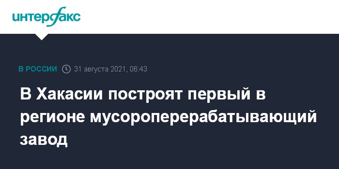 Москва. 31 августа. INTERFAX.RU - ООО "ЭКО групп" построит первый в Хакасии мусороперерабатывающий завод, он расположится в северо-восточной части города Черногорска, сообщила пресс-служба правительства региона.