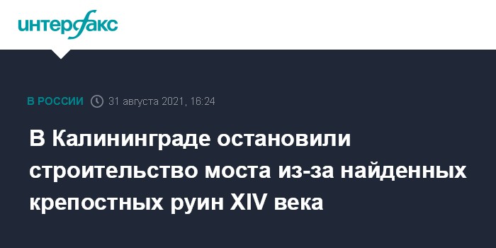 Москва. 31 августа. INTERFAX.RU - В Калининграде строительство моста на остров Канта может быть серьезно задержано, так как рабочие обнаружили руины XIV века. Об этом сообщила журналистам глава городской администрации Елена Дятлова во вторник.