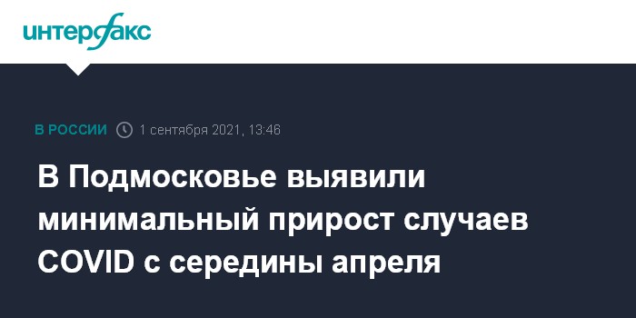 Москва. 1 сентября. INTERFAX.RU - Число случаев заболевания коронавирусом в Московской области превысило 422,8 тыс. человек, следует из данных регионального оперативного штаба по контролю ситуации с COVID-19; при этом за минувшие сутки в регионе выявили минимальное с середины апреля число заразившихся коронавирусом.