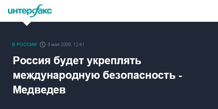 Москва. 9 мая. INTERFAX.RU - Президент РФ Дмитрий Медведев призывает помнить уроки Великой Отечественной войны и делать все возможное для укрепления международной безопасности.