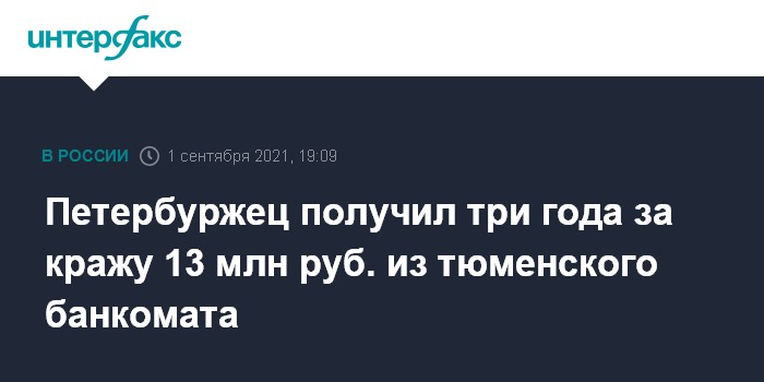 Петербуржец получил три года за кражу 13 млн руб. из тюменского банкомата