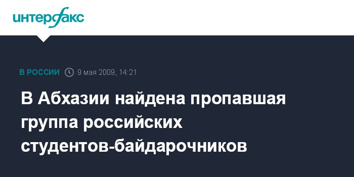 Сухуми. 9 мая. INTERFAX.RU - Группа студентов Владимирского политехнического института, поиски которой продолжались двое суток в Абхазии, найдена в местечке Кучба Иашта в Бзыбском ущелье Гагрского района, сообщил министр внутренних дел Абхазии Отар Хеция.