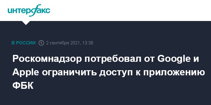 Москва. 2 сентября. INTERFAX.RU - Роскомнадзор направил в Google и Apple требование об ограничении в их сервисах доступа к приложению "Фонда борьбы с коррупцией" (признан в РФ иноагентом, экстремистской организацией и запрещен). В случае отказа компаниям грозят миллионные штрафы и это будет расценено как вмешательство в российские выборы.
