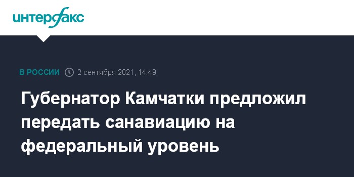 Москва. 2 сентября. INTERFAX.RU - Губернатор Камчатского края Владимир Солодов предлагает передать на федеральный уровень финансирования некоторые направления в дальневосточных регионах, например, работу санавиации.