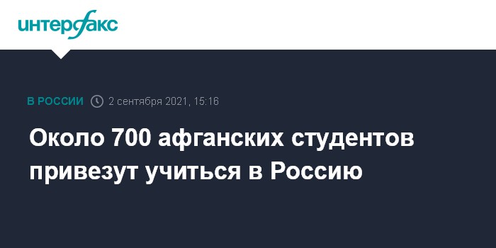 Москва. 2 сентября. INTERFAX.RU - Минобрнауки совместно с МИД РФ прорабатывает вопрос о возвращении в Россию 600-700 студентов из Афганистана для обучения в вузах, в том числе решается вопрос с визами и перелетом, сообщил "Интерфаксу" глава Минобрнауки Валерий Фальков.