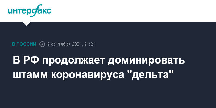 Москва. 2 сентября. INTERFAX.RU - Появляющиеся в мире новые штаммы COVID-19 не получают пока распространения в РФ, доминирующим остается вариант "дельта", заявила глава Роспотребнадзора Анна Попова.
