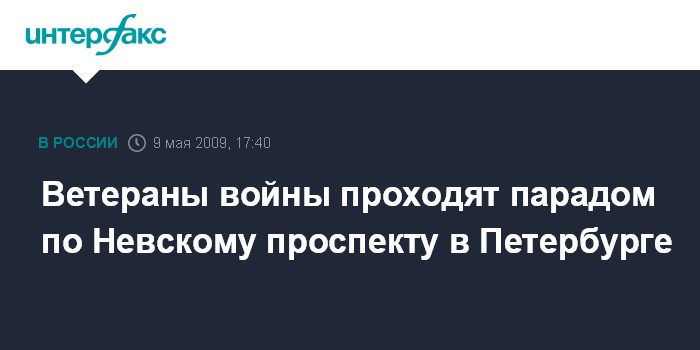 Санкт-Петербург. 9 мая. INTERFAX.RU - Колонна ветеранов Великой Отечественной войны начала шествие от площади Восстания к Дворцовой площади по Hевскому проспекту Петербурга в честь 64-й годовщины Победы.