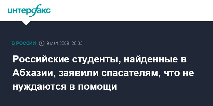 "Они не рассчитали свои силы и поэтому отстали от маршрута на два дня, но намерены продолжить свой турпоход. Все чувствуют себя нормально, им никакая помощь не нужна, и завтра, в воскресенье, после сплава по реке Бзыбь они самостоятельно спустятся в Гагру, а затем вернутся домой", - передал слова студентов по рации Ф.Смыр.