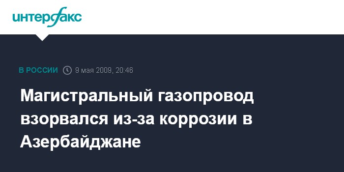 Баку. 9 мая. ИНТЕРФАКС-АЗЕРБАЙДЖАН - В Азербайджане произошел взрыв на магистральном газопроводе Гарадаг-Гаджикубал, сообщает местный телеканал ANS.