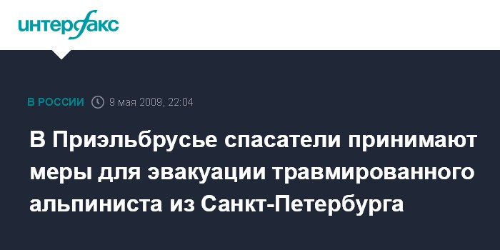 Ростов-на-Дону. 9 мая. ИНТЕРФАКС-ЮГ - Спасатели Эльбрусского поисково-спасательного отряда направлены для оказания помощи травмированному альпинисту из Санкт-Петербурга в район Ачкерья-Кольского лавового потока на высоте 4700 м.