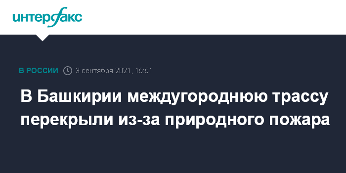 Москва. 3 сентября. INTERFAX.RU - В Баймайкском районе Башкирии природный пожар перешел на междугороднюю трассу Баймак-Сибай, движение по ней временно перекрыли, сообщили в региональном управлении МЧС. На месте дежурят сотрудники ГИБДД.