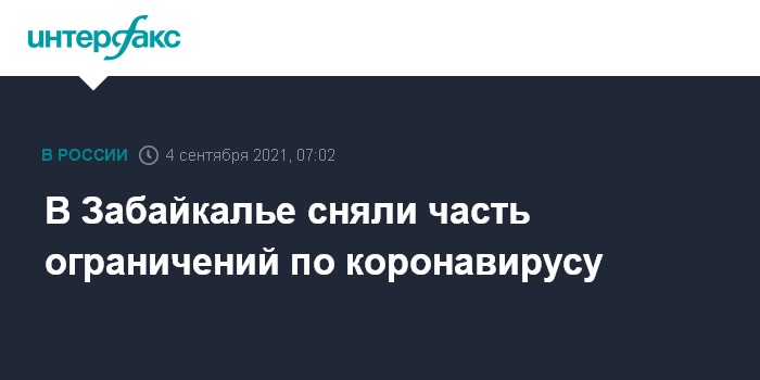 Москва. 4 сентября. INTERFAX.RU - Часть ограничений, введенных на время в связи с коронавирусом, сняли в Забайкальском крае, сообщает региональное правительство.