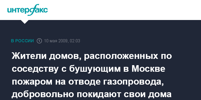 Жители домов, расположенных по соседству с бушующим в Москве пожаром на отводе газопровода, добровольно покидают свои дома