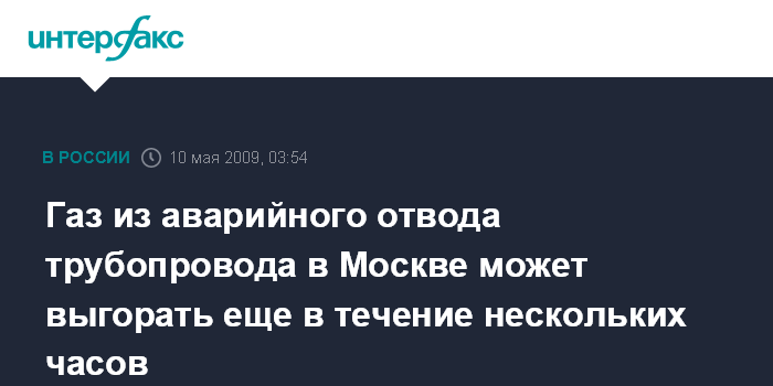 Газ из аварийного отвода трубопровода в Москве может выгорать еще в течение нескольких часов