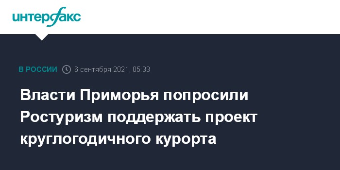 Москва. 6 сентября. INTERFAX.RU - Правительство Приморского края обратилось в Ростуризм за поддержкой проекта круглогодичного курорта, который планируется создать в Хасанском районе в рамках туристско-рекреационного экологического кластера "Земля леопарда", сообщил губернатор региона Олег Кожемяко.