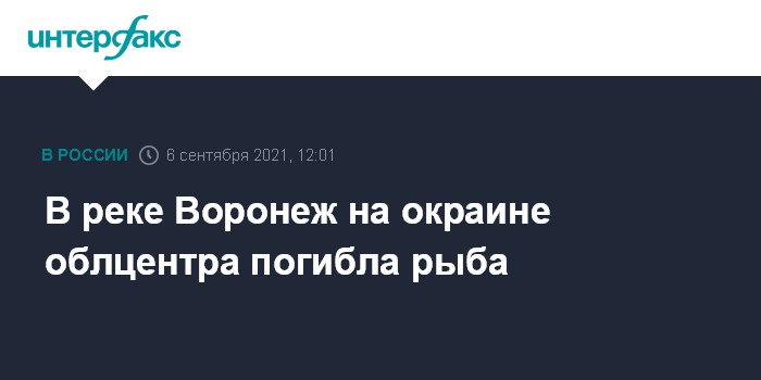 Москва. 6 сентября. INTERFAX.RU - Специалисты устанавливают причины гибели рыбы в реке Воронеж на территории микрорайона Шилово в Воронеже, сообщает Центрально-Черноземное межрегиональное управление Росприроднадзора.