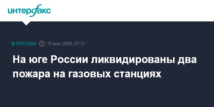 Ростов-на-Дону. 10 мая. ИНТЕРФАКС-ЮГ - Крупный пожар на газовой подстанции ликвидирован в городе Избербаш в Дагестане минувшей ночью, жертв и пострадавших нет.