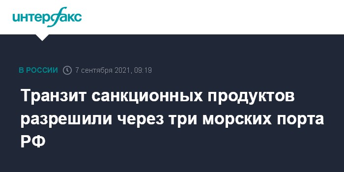 "С 6 сентября через Большой порт Санкт-Петербурга, порт Восточный и Владивостокский морской торговый порт возможен ввоз или вывоз санкционной продукции транзитом по территории Российской Федерации", - говорится в сообщении, опубликованном на сайте центра.