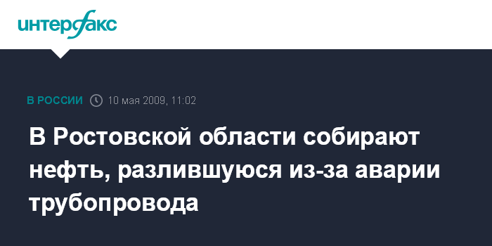 Москва. 10 мая. INTERFAX.RU - При аварии трубопровода в Ростовской области произошла утечка нефти, сообщает МЧС РФ в воскресенье.