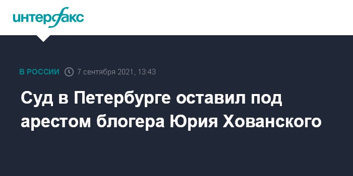 Москва. 7 сентября. INTERFAX.RU - Куйбышевский районный суд Петербурга еще на месяц продлил арест видеоблогеру Юрию Хованскому (внесен Росфинмониторингом в реестр граждан, причастных к терроризму и экстремизму), сообщает объединенная пресс-служба судов города во вторник.