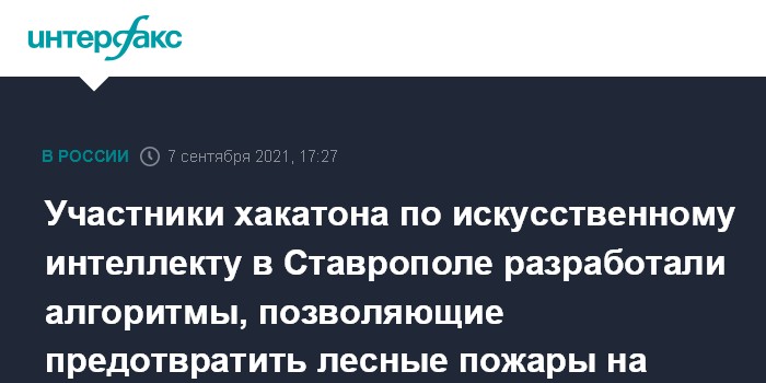 Москва. 7 сентября. INTERFAX.RU - 5 сентября в Ставрополе назвали победителей хакатона по искусственному интеллекту – третьего из 116 мероприятий серии хакатонов и лекций по искусственному интеллекту, которые пройдут во всех регионах России в рамках реализации федерального проекта "Искусственный интеллект".