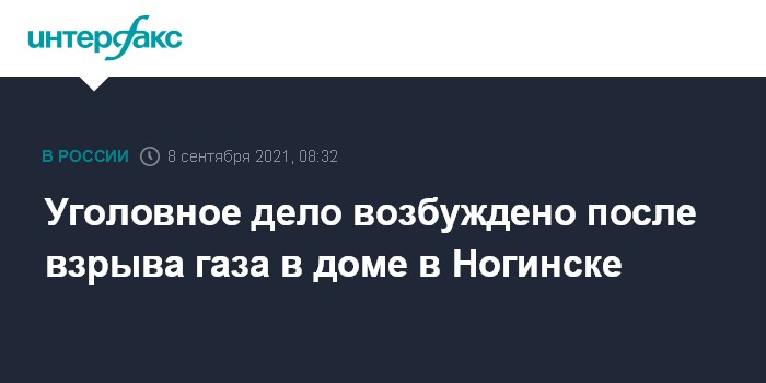 Москва. 8 сентября. INTERFAX.RU - Уголовное дело об оказании услуг, не отвечающих требованиям безопасности, возбуждено по факту взрыва газа в жилом доме в подмосковном Ногинске, сообщила представитель регионального главка Следственного комитета (СК) Ольга Врадий.